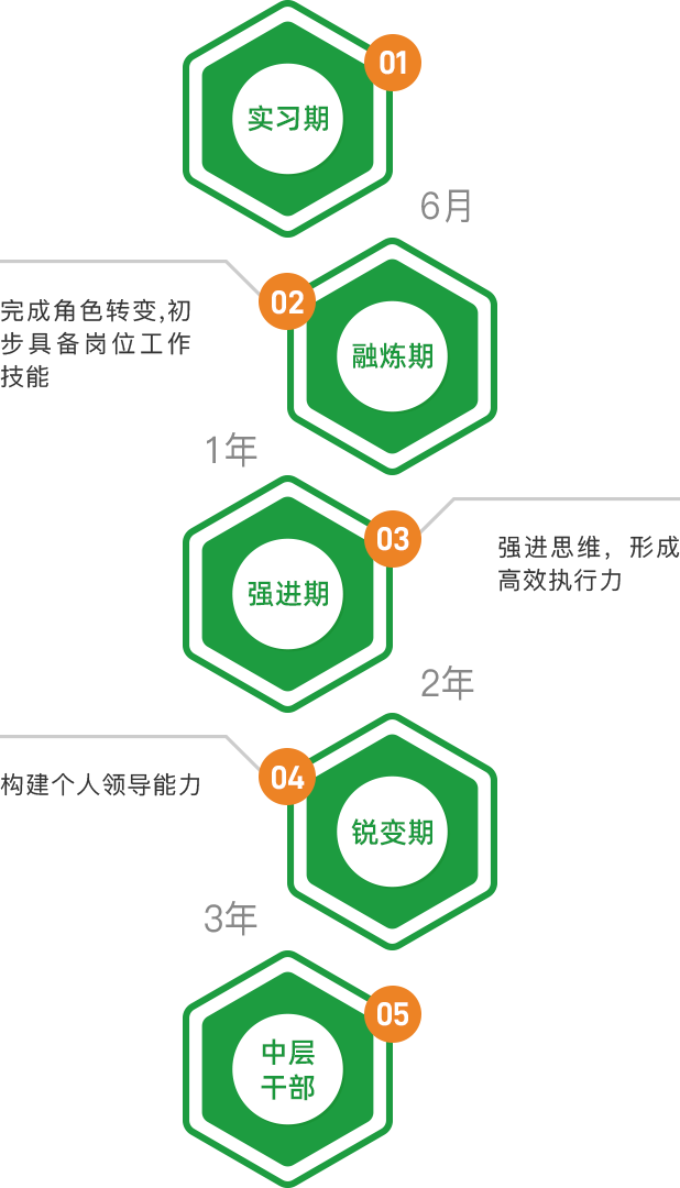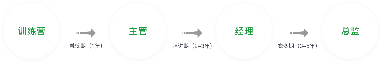 和聚力培養(yǎng)周期為三年,不同階段輔以不同培養(yǎng)項目,職位目標(biāo)為晉升至中層。6次評估、4次晉升、15場集中培訓(xùn)、3次拓展活動、9次座談會/案例分享